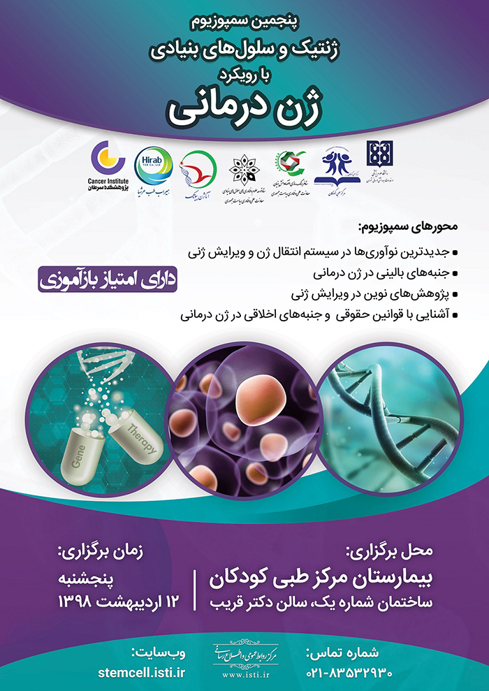 اخبار > پنجمین سمپوزیوم " ژنتیک و سلولهای بنیادی با رویکرد ژن درمانی " برگزار می شود
