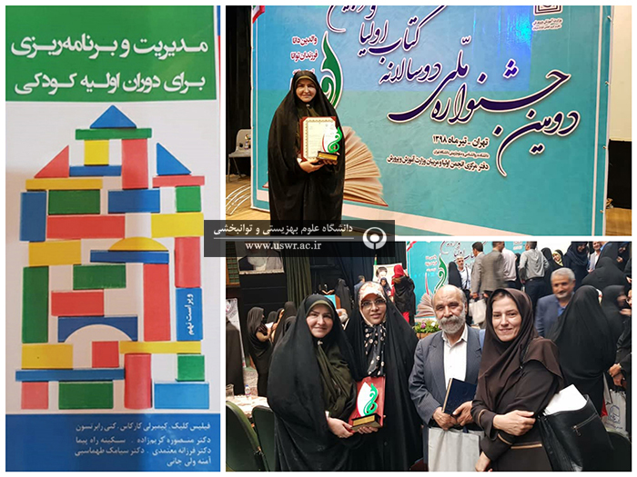 کتاب " مدیریت و برنامه ریزی برای دوران اولیه کودکی " که توسط مدیر گروه آموزشی و عضو هیات علمی رشته "رشد و پرورش کودکان پیش از دبستان" دانشگاه علوم بهزیستی و توانبخشی نوشته شده است، در جشنواره دوسالانه وزارت آموزش و پرورش، برتر شناخته شده و وزیر آموزش و پرورش با اعطای لوح، از ایشان تقدیر کرد.