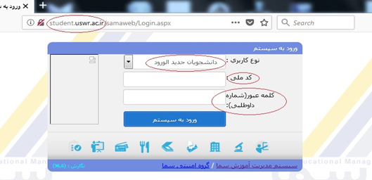 1- ورود به سایت student.uswr.ac.ir جهت ثبت نام در سامانه سما و در نهایت دریافت شماره دانشجویی برای ورود به سامانه بوستان .