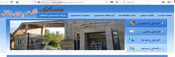 2- مراجعه به سايت boostan.uswr.ac.ir و ورود به آیکون دانشجویان جدیدالورود برای انجام تشکیل پرونده.