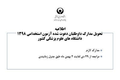 اخبار > اطلاعیه تحویل مدارک داوطلبان دعوت شده آزمون استخدامی مورخ 98/8/30 دانشگاه های علوم پزشکی کشور