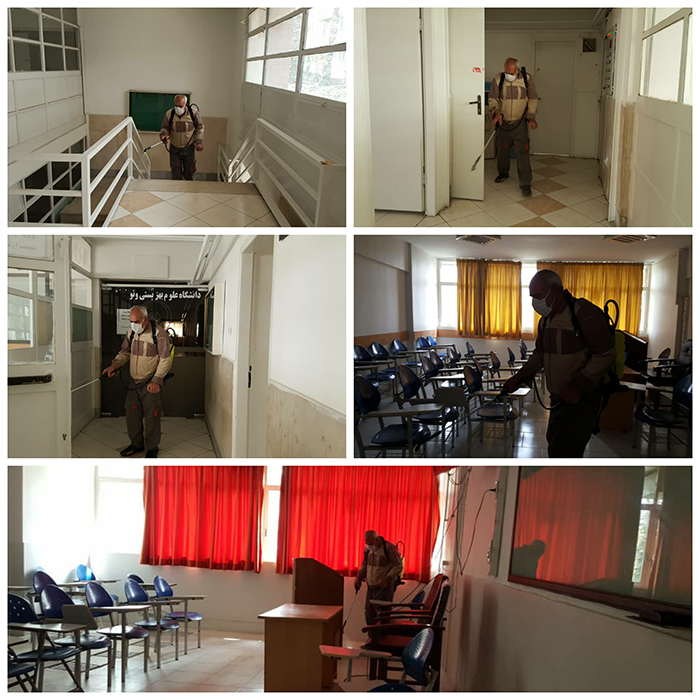 اخبار > مسیرهای رفت و آمد و فضاهای عمومی دانشگاه علوم بهزیستی و توانبخشی برای چندمین بار، ضدعفونی شد